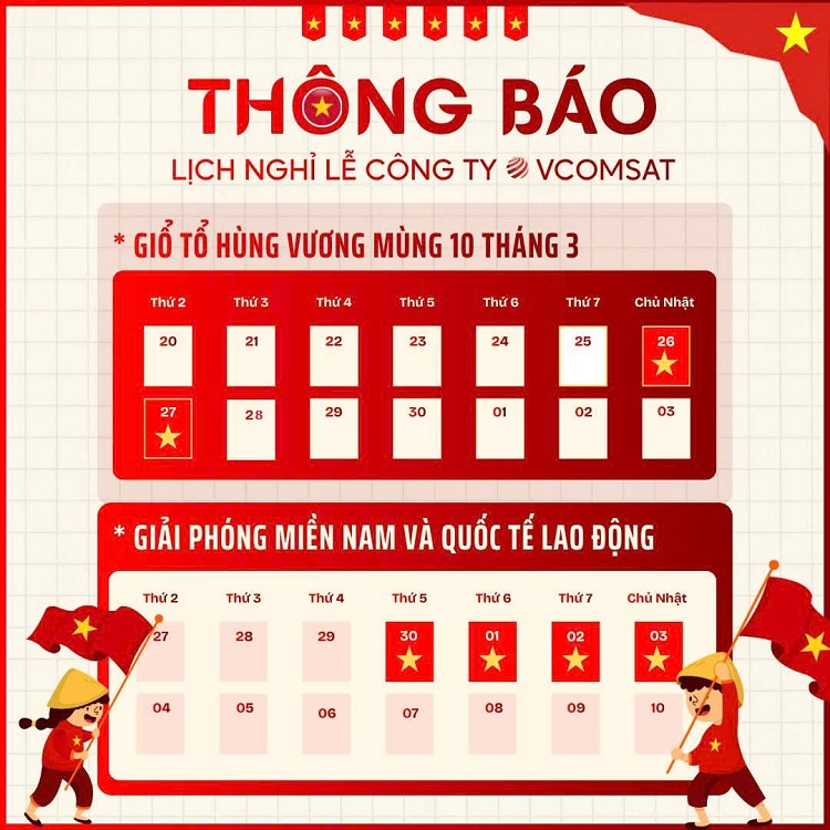 THÔNG BÁO LỊCH NGHỈ LỄ GIỖ TỔ HÙNG VƯƠNG & 30/4 – 01/5